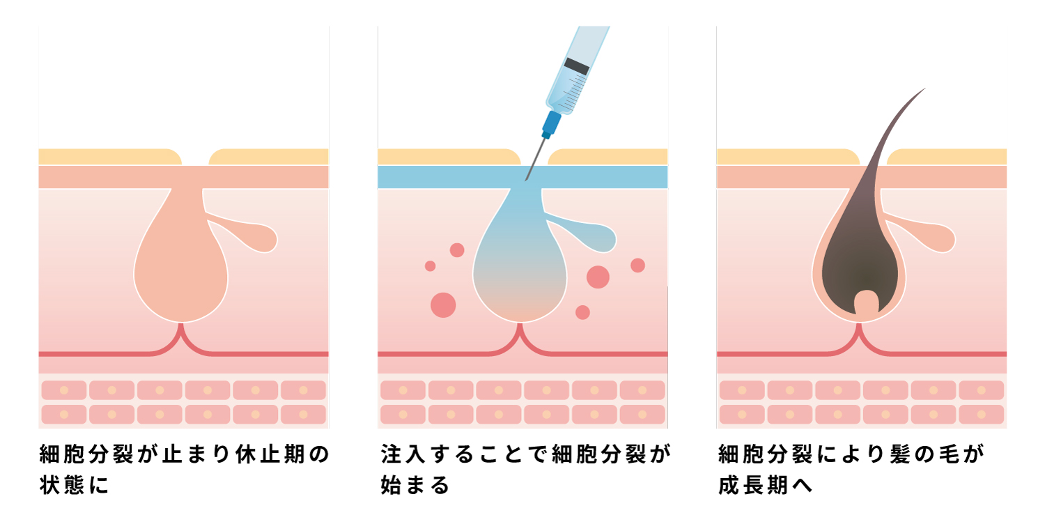 臍帯血由来の高濃度成長因子やご自身の血液から抽出した高濃度成長因子を注入するオーダーメイドのメソセラピー治療を行います。より早く・高い発毛効果をご希望される方にはおすすめの治療方法となります。
