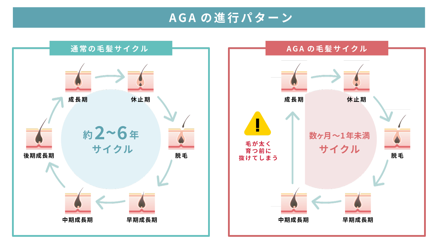 AGA(男性型脱毛症)・FAGA(女性型脱毛症)は進行性の脱毛の病気です。